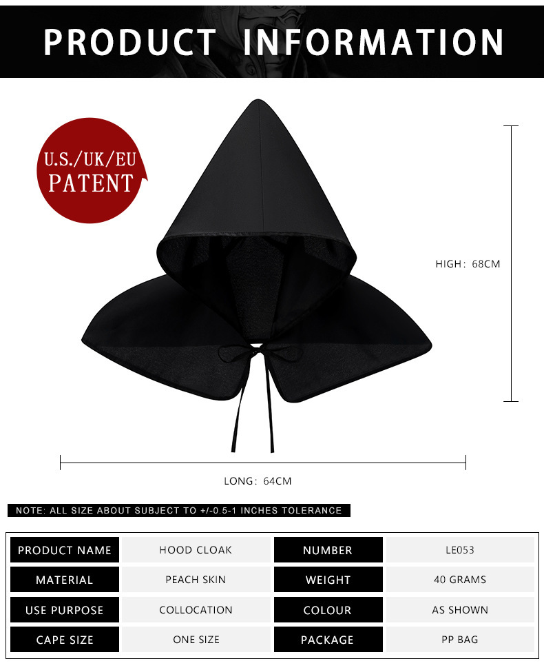 This is a newly launched Halloween headdress, also known as a medieval cape, COSPLAY prop. This cape combines the mysterious atmosphere of Halloween with the classic style of the Middle Ages. The exquisite plague bird mask adds a touch of horror and charm to your COSPLAY look, making you the most eye-catching presence at the Halloween party. If you like it, buy it now! !