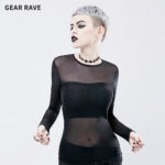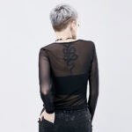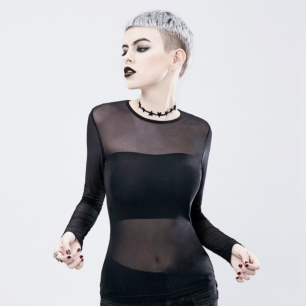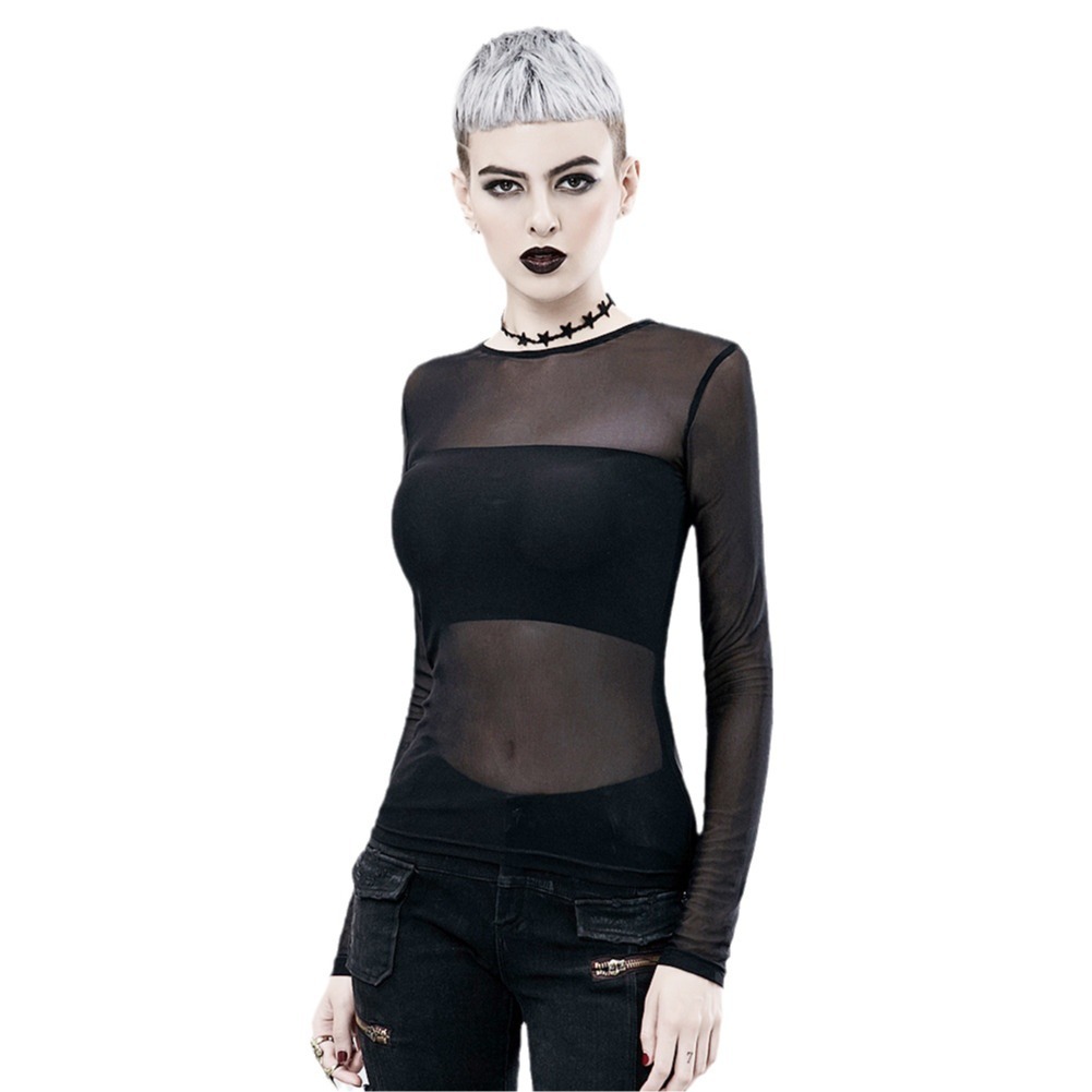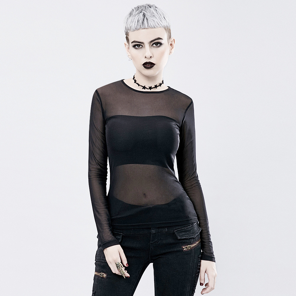 2025 New Punk see-through long-sleeved black T-shirt