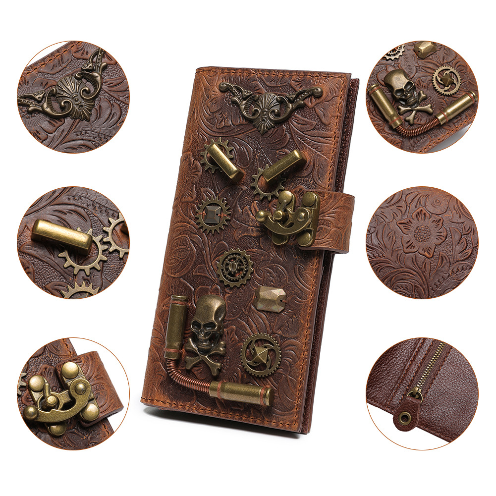 Steampunk Cowhide Vintage Embossed Wallet-ZPBG190